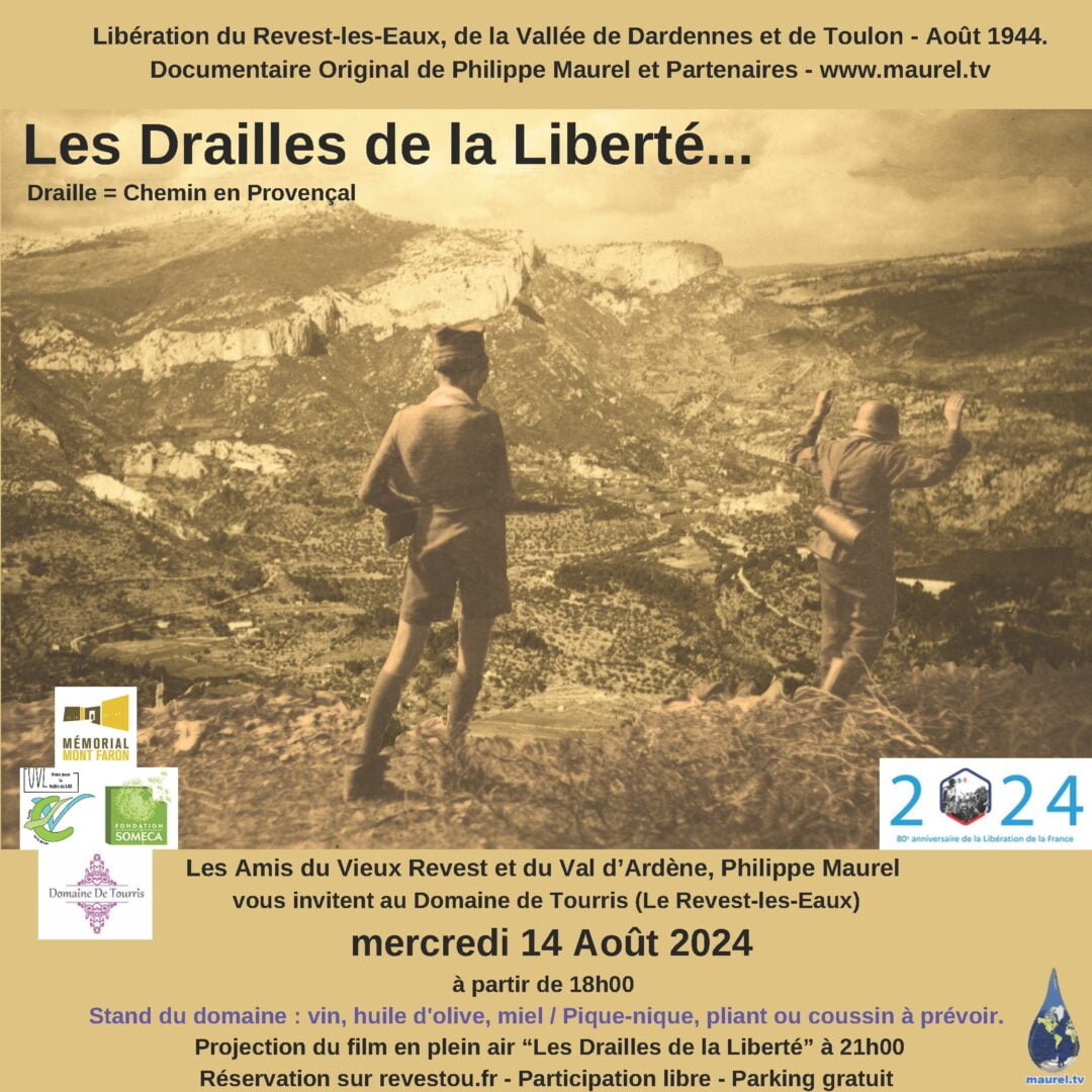 Cinéma en plein air 🍿Rendez-vous ce soir dès 18h au Domaine de Tourris🌳pour une projection du documentaire "Les drailles de la Liberté".