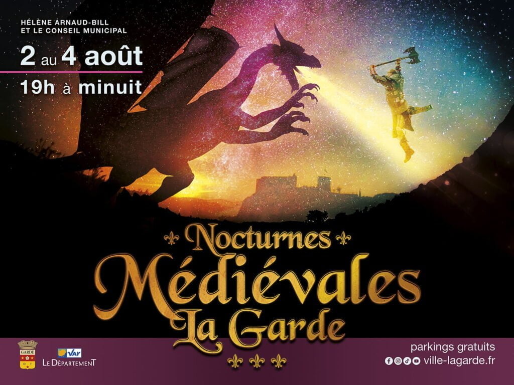 Nocturnes Médiévales 2024Du 2 au 4 août 2024 de 19H à minuit, venez festoyer au temps du Moyen-Age lors des Nocturnes Médiévales 2024 organisées par La Ville de La Garde.