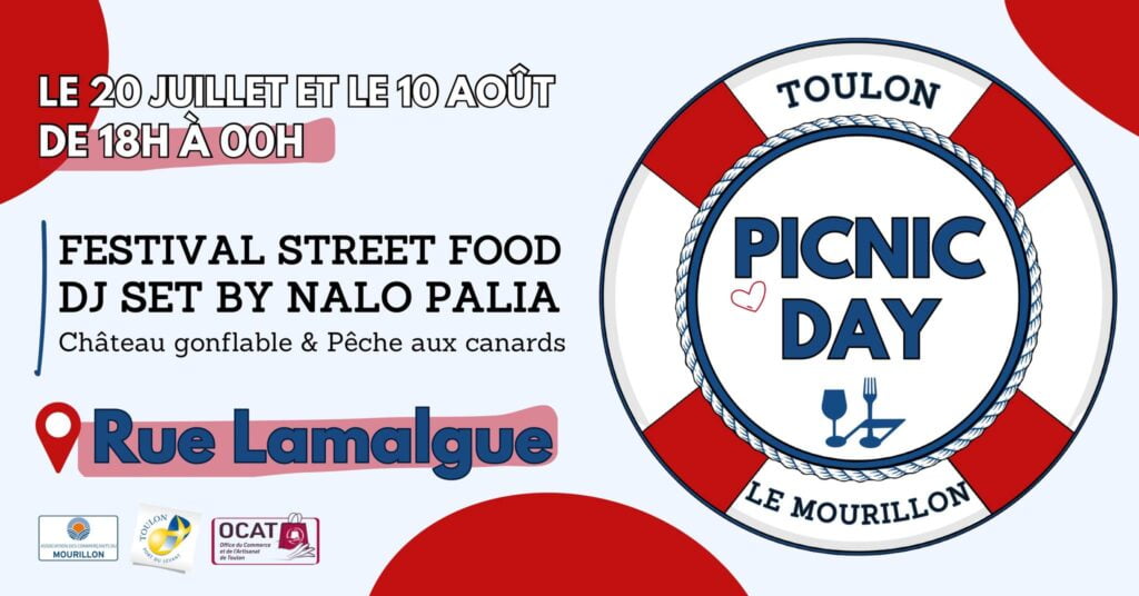 Picnic Day au MourillonLa célèbre Picnic Day fait son grand retour le samedi 10 août 2024 dans la rue Lamalgue à Toulon !