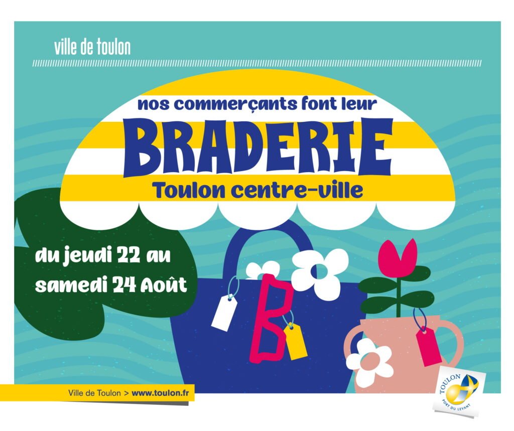 Braderie d'été des commerçants du centre-ville de Toulon 🛍️La Ville de Toulon organise La Braderie d’été des commerçants du centre-ville de Toulon ! Elle vous ouvre ses portes du 22 au 24 août de 9h à 19h.