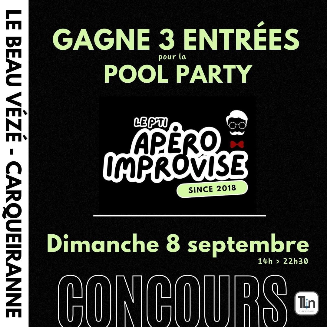 Jeu Concours !Pool party et DJ sets le 8 septembre avec le P'ti Apéro Improvisé ! 3 entrées à gagner ! 🍀