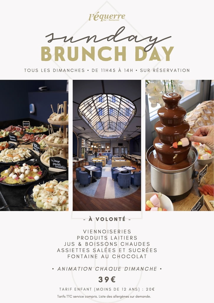 Envie d'un brunch gourmand à Toulon ? 🥐Le Bar – restaurant L’ÉQUERRE vous propose le Sunday Brunch Day, tous les dimanches de 11h45 à 14h ! Un large buffet vous attend ! 😋