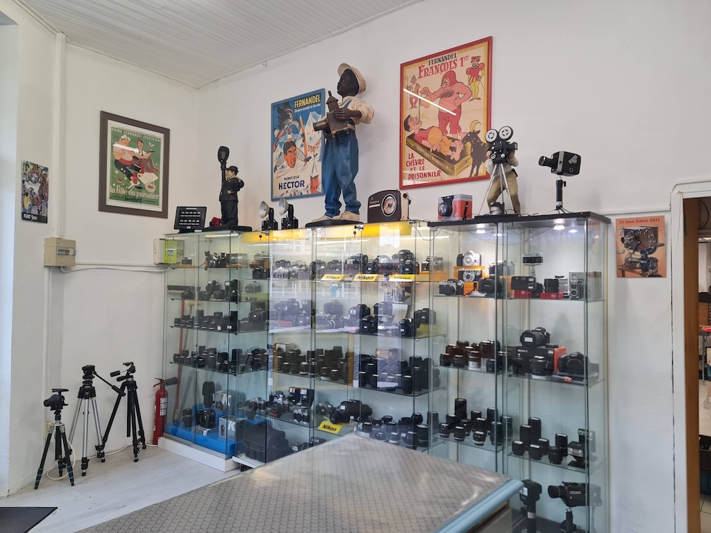 Dans sa  boutique, située 1 rue Dumont d’Urville à Toulon (Var), on peut y trouver appareils photo, objectifs mais aussi lanternes magiques, projecteurs, tables de montage, colleuses, films, posemètres, stéréo..